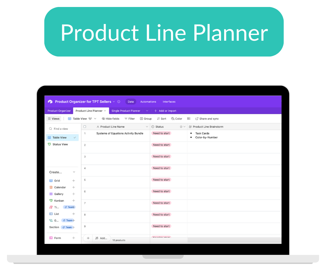 Before you dive into creating TPT products, it's good to have a plan so you don't waste time creating high-quality resources. This tab is used to brainstorm and map out the individual products before your