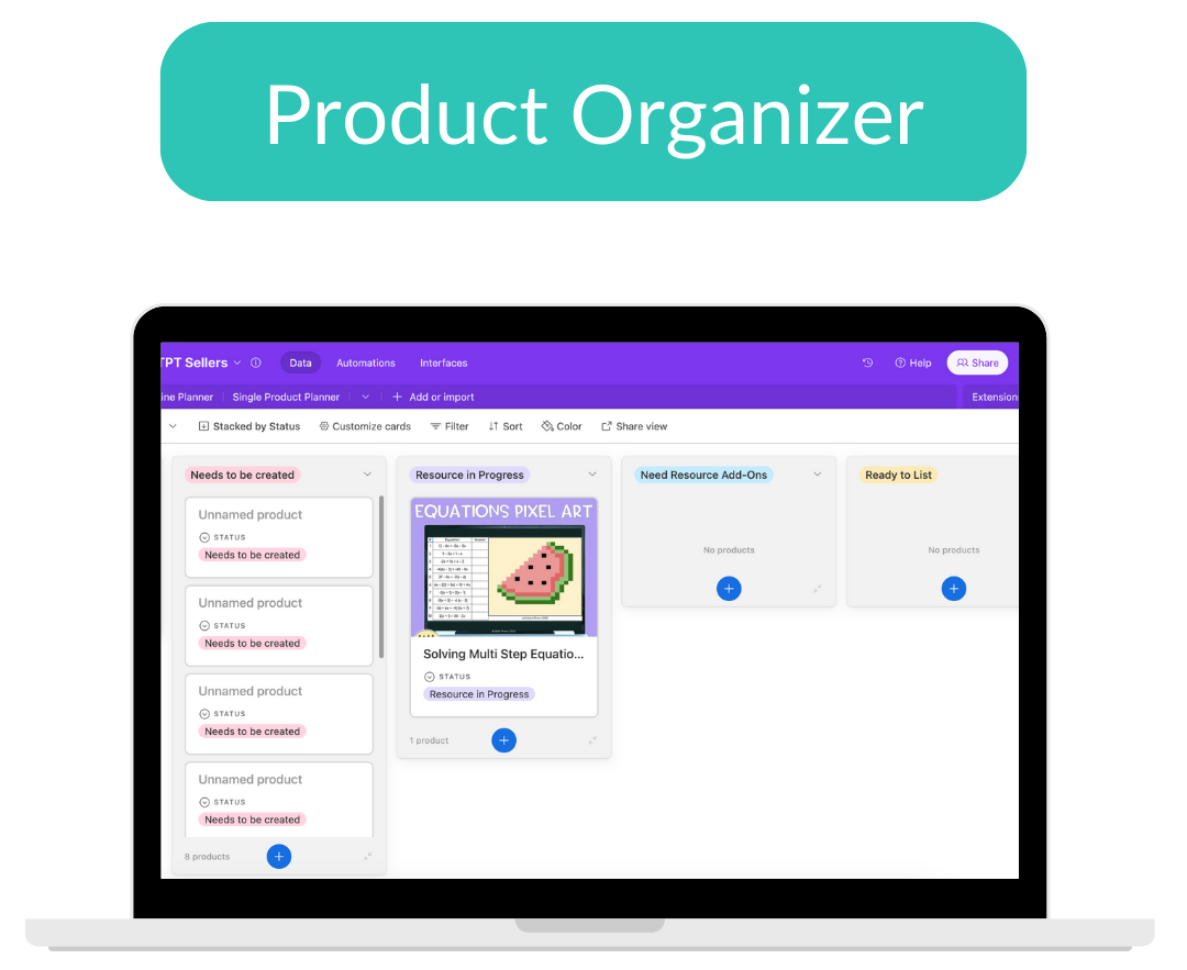 Having all of your TPT product ideas and the status of each product during the creation process in one place is incredibly helpful! No more hopping around different website tabs or files on your desktop to find what you're looking for.