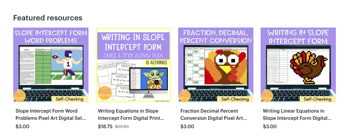 Your Featured section tells buyers who you are as a seller. Are you organized? Seasonal? Aligned with what they’re teaching? Highlighting well-designed resources shows your professionalism before they ever open a listing.